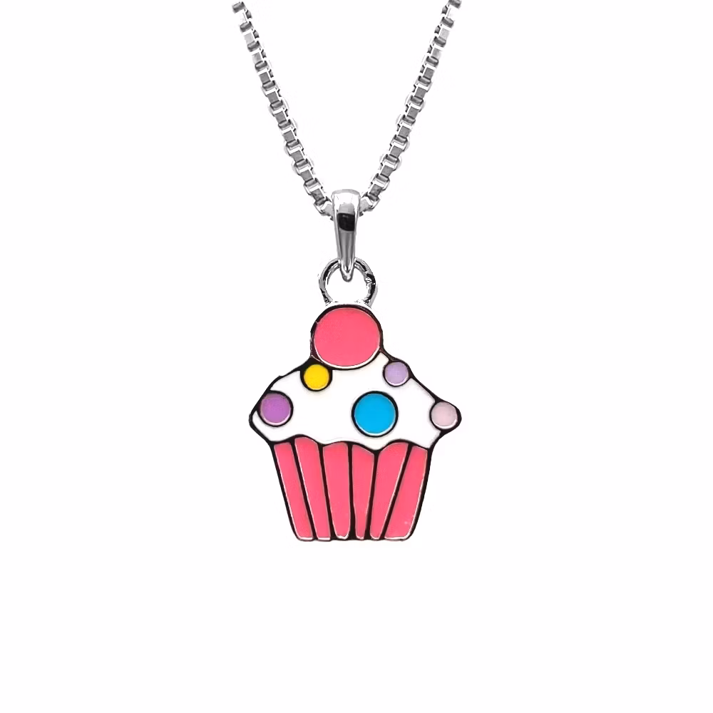 Barnhalsband i silver - söt rosa Cupcake i äkta 925 silver