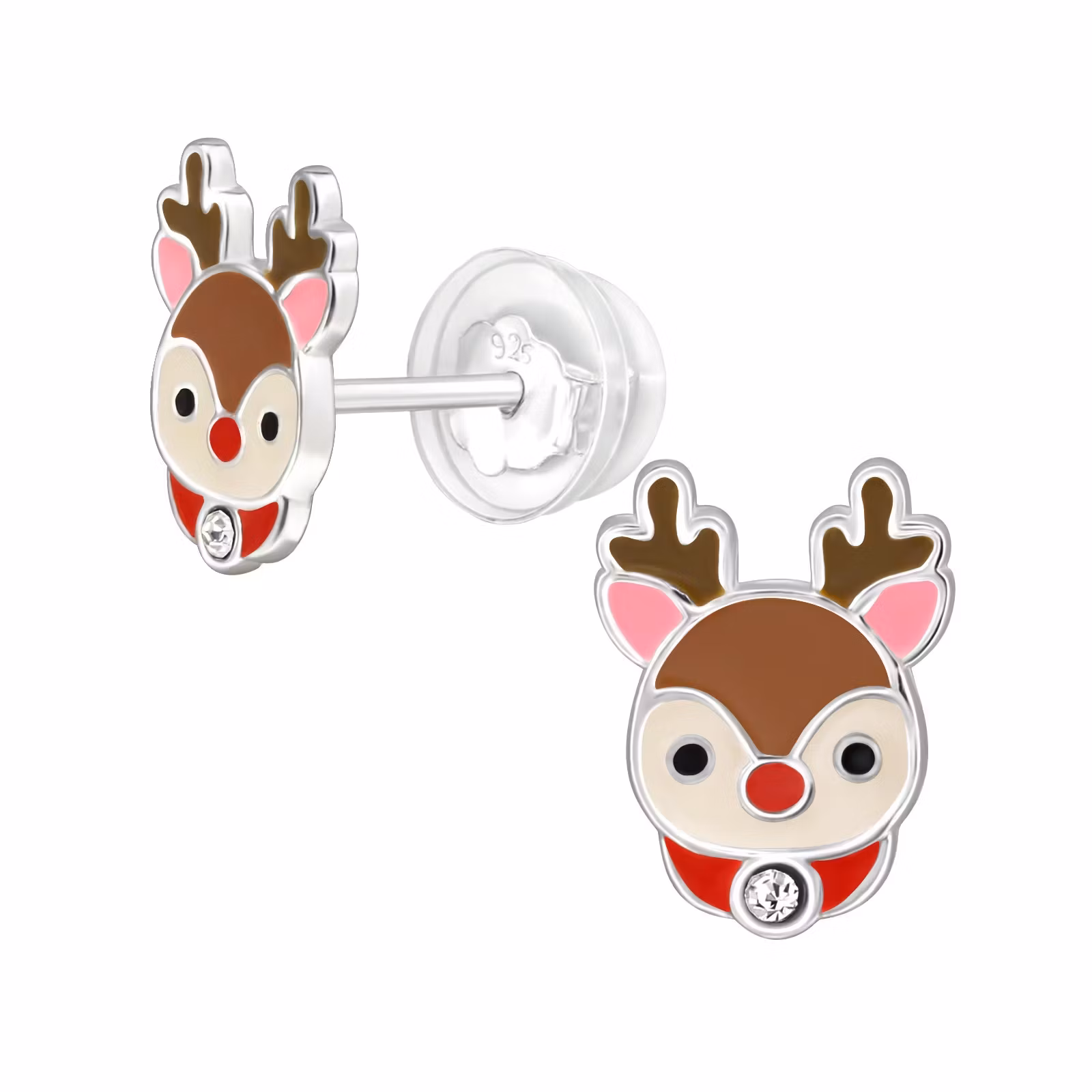 Söta julörhängen till barn i äkta silver. Fina barnörhängen med söta Renar. Fri Fraktmöjlighet och Presentask. Dessa örhängen har bakploppar i silver som har ett överdrag i silikon så att örhänget smidigt och bekvämt sitter på plats.