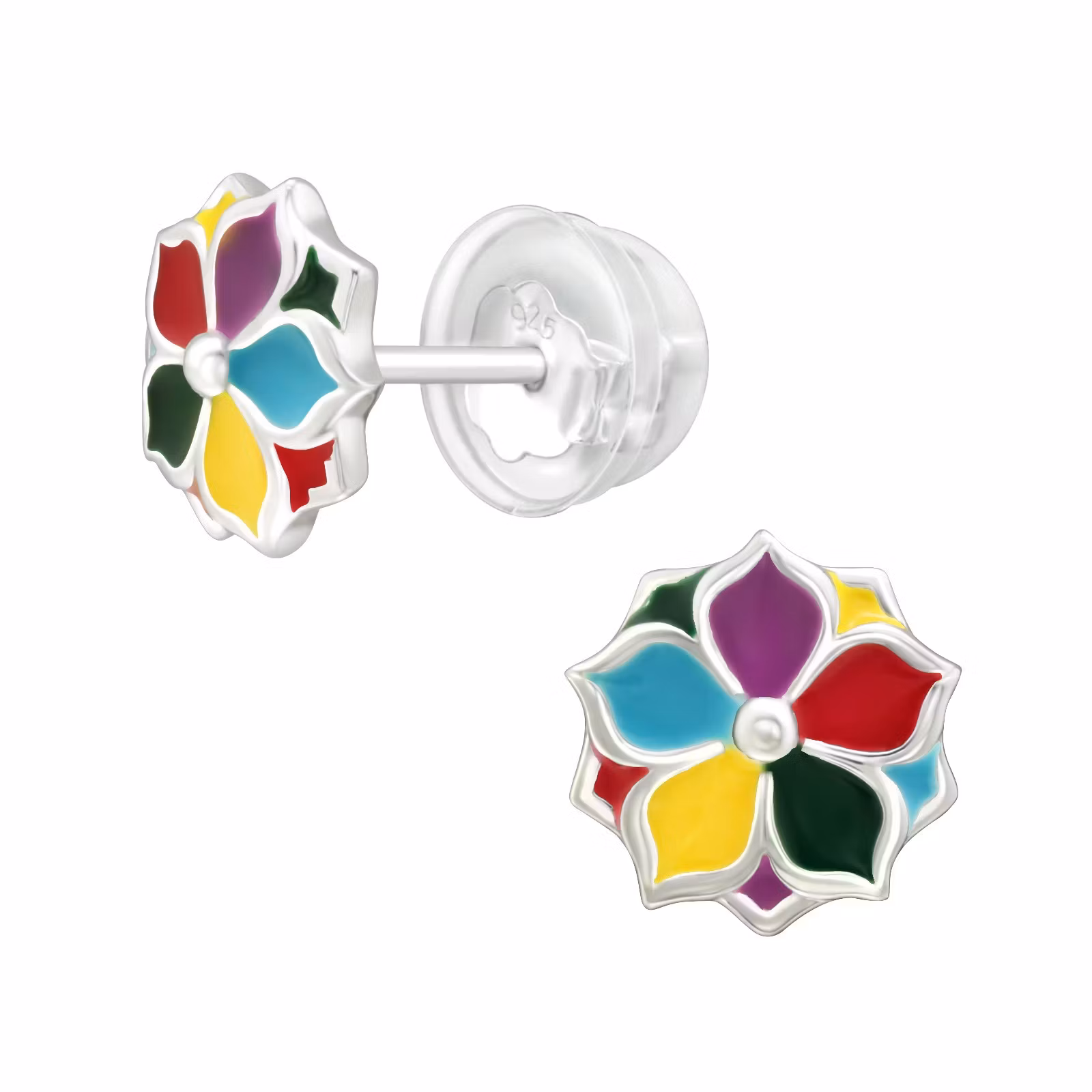 Barnörhängen färgglad Blomma - örhängen i äkta 925 silver