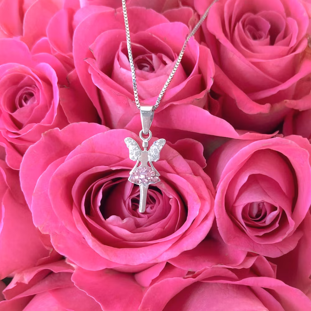 Doppresent flicka - dophalsband i äkta silver Lyckofe rosa
