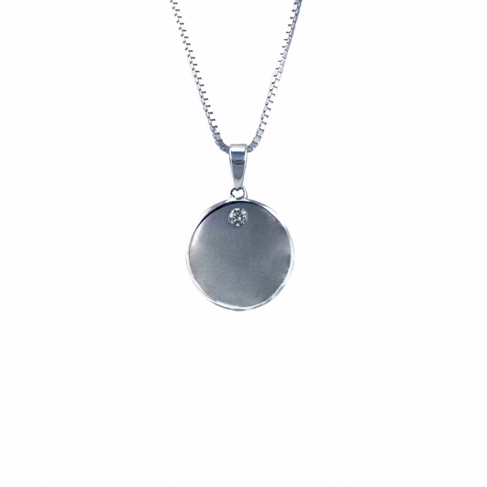 Här: ett Sweethearts silverhalsband med en fin hängande platta. Smycket behöver inte putsas eller blir missfärgat som andra silversmycken då det är Rhodiumpläterat vilket ger ett hållbart smycke med en exklusiv finish liknande vitguld eller platina. I mitten av smycket finns en Cubic Zirkonia vilket är den syntetiska sten som allra mest liknar en diamant.