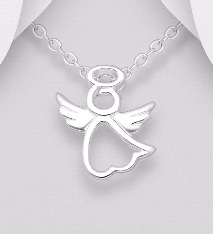 Fint silverhalsband i äkta 925 sterling silver med skyddsängel. Vackert smycke med en gullig ängel i flygande design. Fri Fraktmöjlighet och Presentask. Kedja medföljer, välj mellan två längder, 35cm om halsbandet är till ett barn eller 45cm om det är till en vuxen. Ett välgjort halsband som är lika fint att ge bort som present till barn eller vuxen.