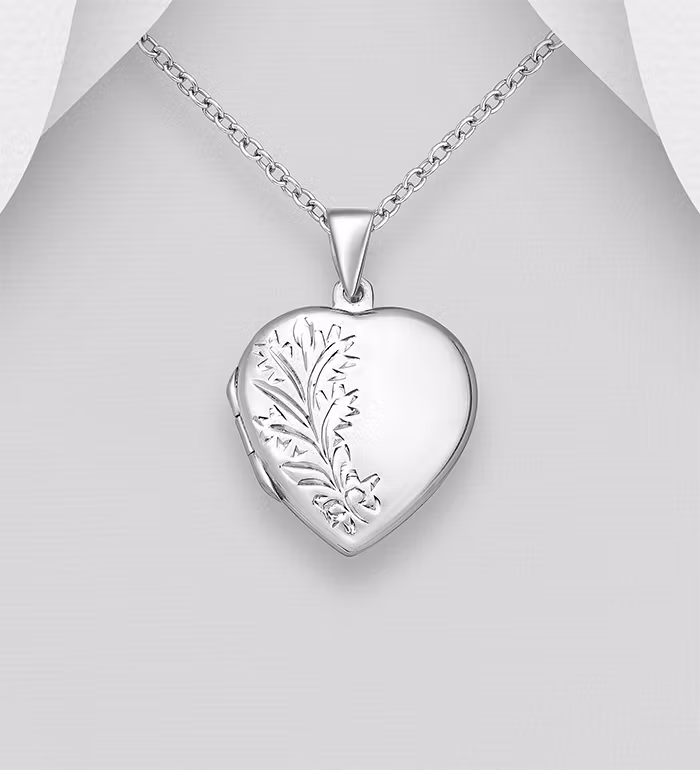 Silverhalsband med hjärta. Vackert öppningsbart hjärta med fin gravyr. Ett hjärthalsband i äkta silver. Fri Frakt och Presentask!