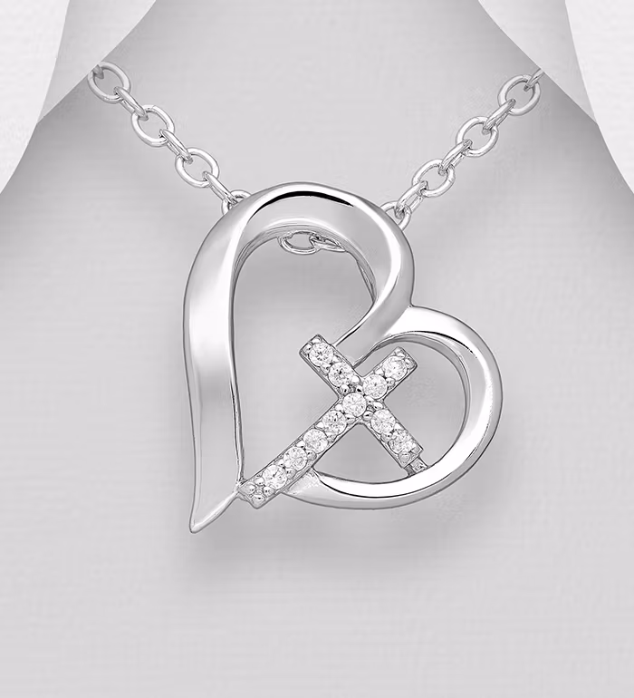 Fint halsband med hjärta i äkta 925 sterling silver. Vackert silverhjärta med kors av glittrande cubic zirkonia stenar. Fri Fraktmöjlighet och Presentask.