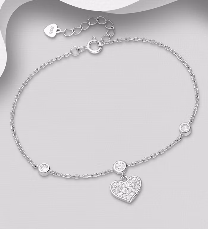 Fint silverarmband i äkta 925 silver. Vackert armband med glittrande hängande hjärta och Cubic Zirkonia stenar. Fri Fraktmöjlighet och Presentask. Rhodiumpläterad exklusiv finish liknande vitguld och platina. Ett elegant armband som är fint att ge bort som present eller att köpa till dig själv.